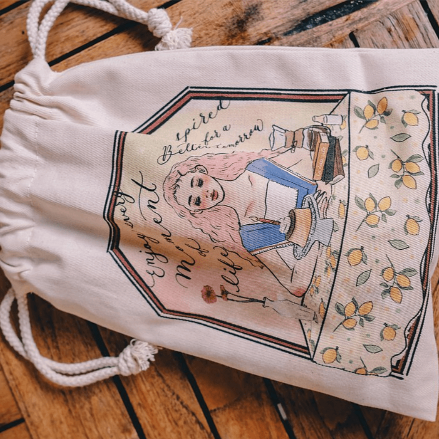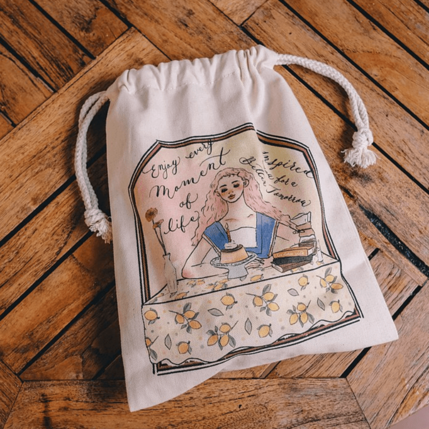 Drawstring canvas bag designed by Taiwanese illustrator, La Dolce Vita. With pastel, dreamy sugary colour tones and rich details, we believe that you will bath in happiness when using this beautiful drawstring bag. It is designed to be light and portable, ideal for storing and organising your favourite stationery, digital devices and other small items.