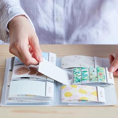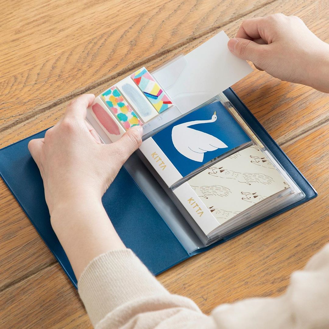 KITTA is a handy portable washi tape sticker set in a cute package, and this storage file holds 24 KITTA stickers for regular size, 6 KITTA stickers for mini size file. It comes with clip-like pockets where these upper and lower clip-like part hold KITTA. There is also a small pocket at the last cover which could store some KITTA stickers.