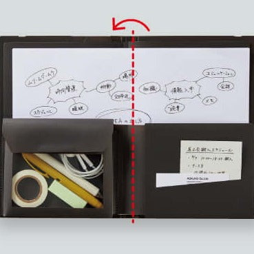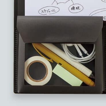 A multi-functional mini pocket located at the bottom left corner provides space for storing small items up to 8mm thick, such as pens, sticky notes, or washi tape. Perfect for essential stationery items needed during meetings.