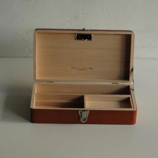 Placing it on your desk will not only add a touch of vintage charm but also enhance the overall aesthetics of your workspace. With its convenient top handle and sturdy hinged lid, you can easily take this wooden box with you to stationery enthusiast gatherings.