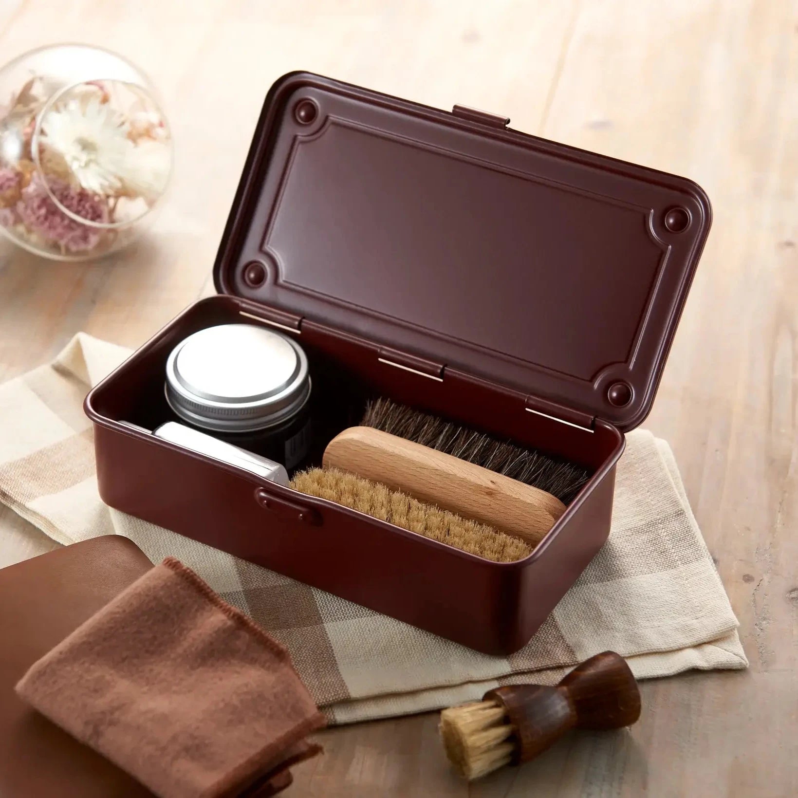A beautifully crafted Japanese toolbox made from solid steel and finished in a rich, durable enamel. This compact piece, with its versatile size, becomes whatever you need it to be — a holder for small tools, a keeper of your favourite stationery, a storage for art supplies, or even a stylish lunchbox. Its versatility extends from household essentials like first-aid kits and sewing supplies to outdoor camping and gardening tools — a piece that grows more charming with age.