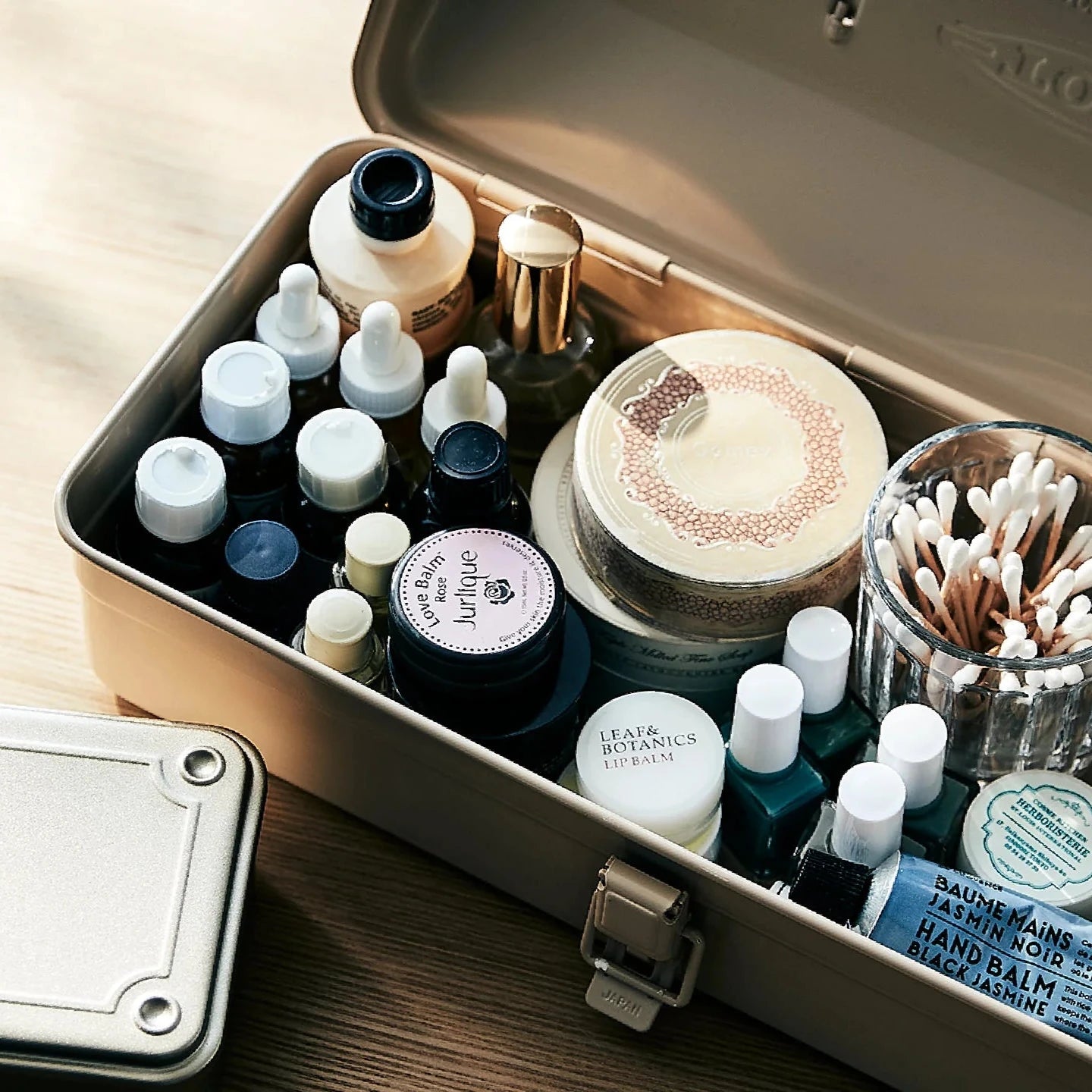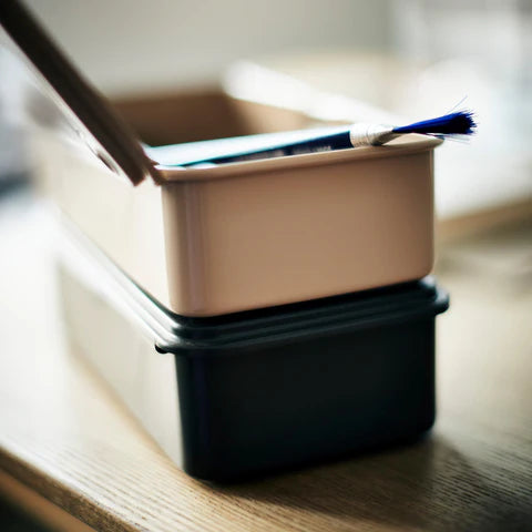 A beautifully crafted Japanese toolbox made from solid steel and finished in a rich, durable enamel. This compact piece, with its versatile size, becomes whatever you need it to be — a holder for small tools, a keeper of your favourite stationery, a storage for art supplies, or even a stylish lunchbox. Its versatility extends from household essentials like first-aid kits and sewing supplies to outdoor camping and gardening tools — a piece that grows more charming with age.